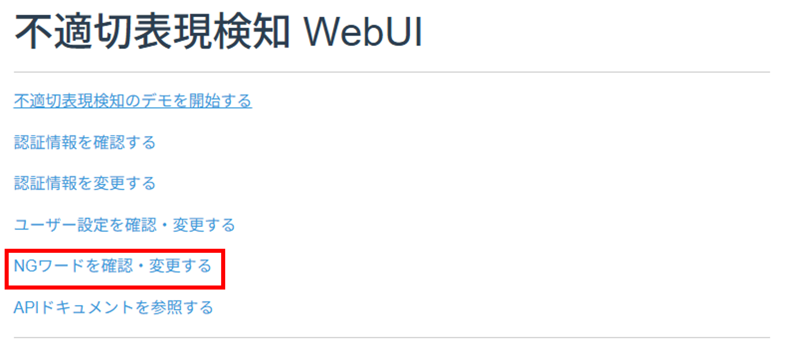 - 「NGワードを確認・変更する」をクリックし、NGワード画面に移動します。