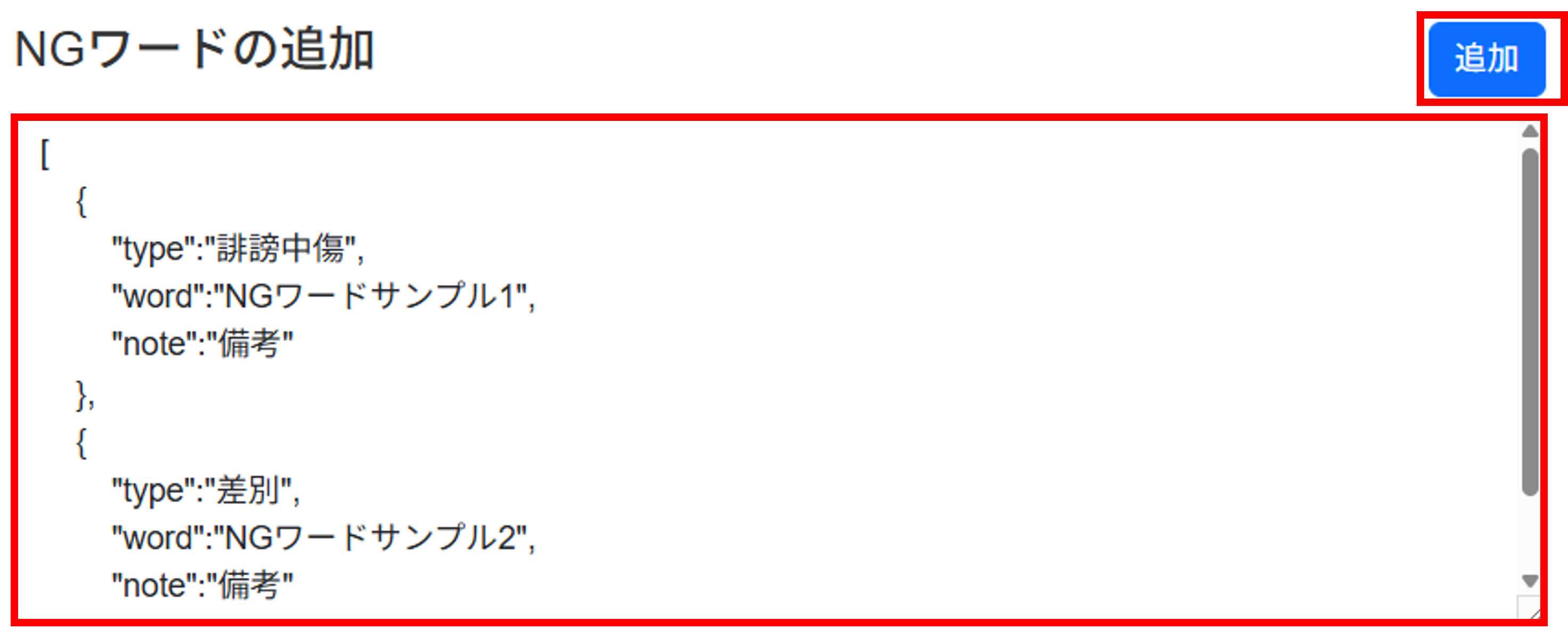 - 備考: (オプション)NGワードの特記事項を示す項目です。